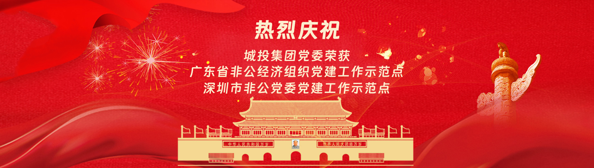 在上級黨委的正確領導下,在城投集團的大力支持下,集團黨委緊緊圍繞企業發展戰略,將黨建引領核心貫穿始終,以五心工程(即思政建設核心工程、經營發展中心工程、企業文化向心工程、黨建品牌匠心工程、服務基層愛心工程)為抓手,大膽探索,勇于突破和創新,不斷形成城投黨建特色,有效輸出城投實踐經驗,充分發揮紅色引擎作用,先后獲得深圳市非公黨委黨建工作示范點、深圳市兩新組織黨建工作示范點深圳市文明單位、深圳市先進基層黨組織廣東省非公有制經濟領域黨建工作示范點等榮譽稱號。